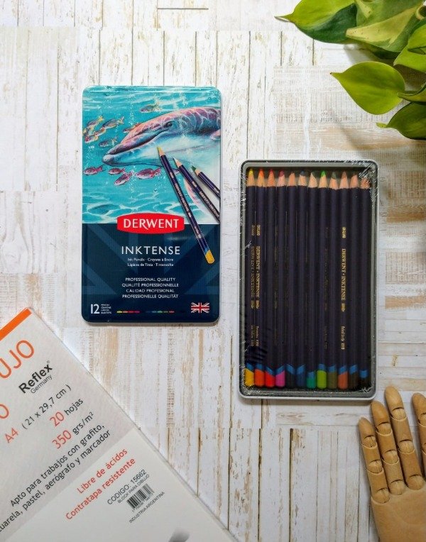 Lápices Inktense por 12, son lápices acuarelables con efecto tinta.