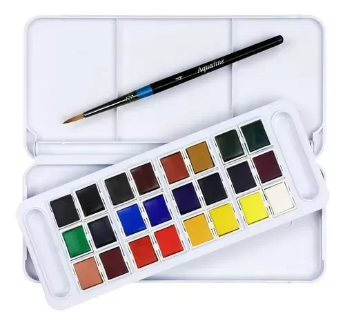 El set de 24 acuarelas Aquafine en pastillas es una gran opción para quienes buscan calidad y practicidad en un solo formato. Con pigmentos intensos y buena solubilidad, estas acuarelas ofrecen un flujo suave de color que se adapta bien tanto a técnicas sueltas como a trabajos más detallados.